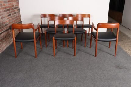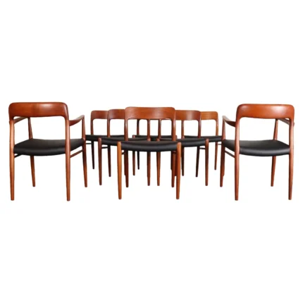 Set of Eight Danish Teak and Leather Niels O Møller Dining Chairs Models 75 & 56