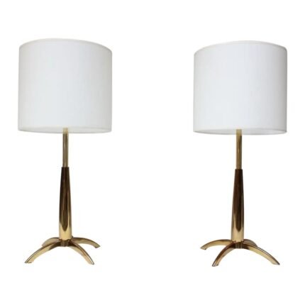 Pair of Mid-Century Stiffel “Rocket” Table Lamps in Brass
