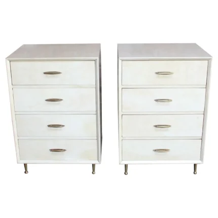 Pair of Vintage Italian Four-Drawer Goatskin and Brass Nightstands