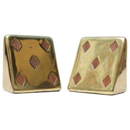 Ben Seibel for Jenfred Ware Bookends in Brass and Walnut “Diamond”
