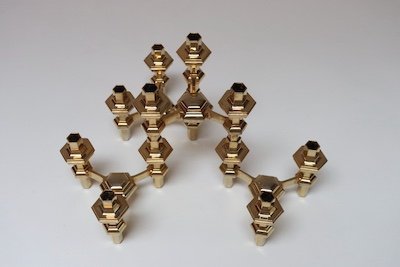 Set of Four Hexagonal-Form Stackable Brass Candleholders by Nagel Geschenke