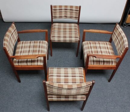 Set of Four Mid-Century American Modern Walnut Dining Chairs After Jens Risom