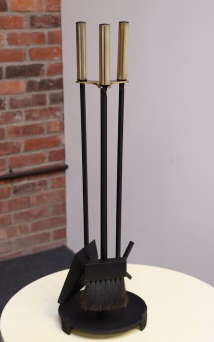 Mid-Century Modern Iron and Brass Fireplace Tool Set