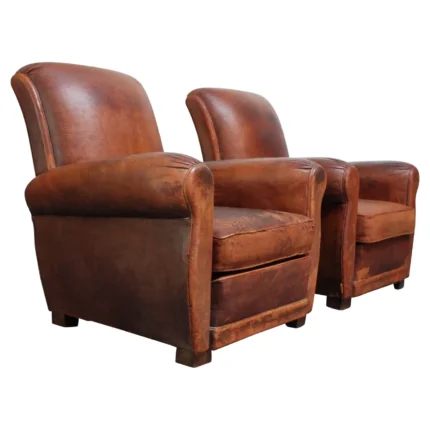 Pair of Vintage French Leather ‘Mustache’ Club Chairs