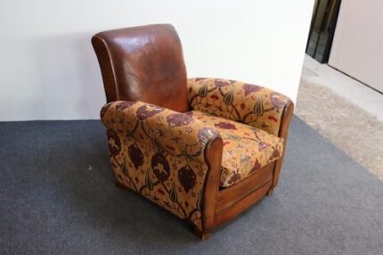French Deco Club Chair in Leather and Anatolian Turkish Kilim Upholstery