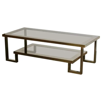 Maison Jansen Bronze and Smoked Mirror Glass Two-Tier Coffee Table