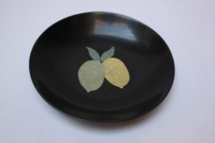 Mid-Century Black Resin Inlaid “Lemon and Lime” Plate by Couroc