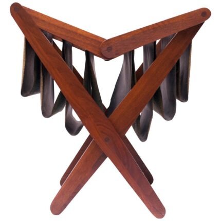 Henry P. Glass Walnut and Naugahyde Magazine Rack