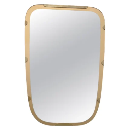 Large Vintage Italian Asymmetrical Wall Mirror in Aluminum, Brass, and Walnut