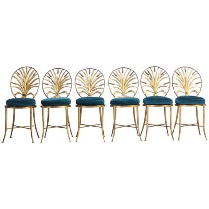 Set of Six Hollywood Regency-Style Italian Gilded Chairs by S. Salvadori
