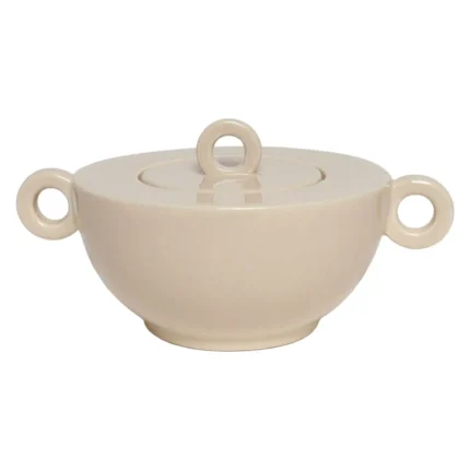 French Art Deco Taupe Ceramic Lidded Sugar Bowl by Jean Luce