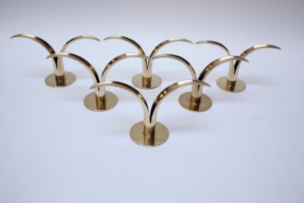Set of Six Swedish Modern Brass ‘Liljan’ Candleholders by Ivar Ålenius Björk
