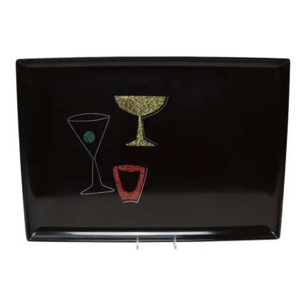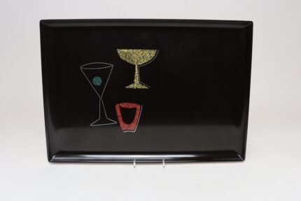 Large Rectangular Mid-Century Black Resin Coral and Shell Inlaid “Barware” / “Martini” Drinks Tray by Couroc