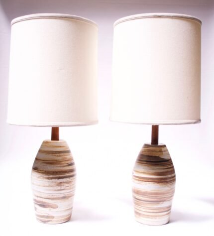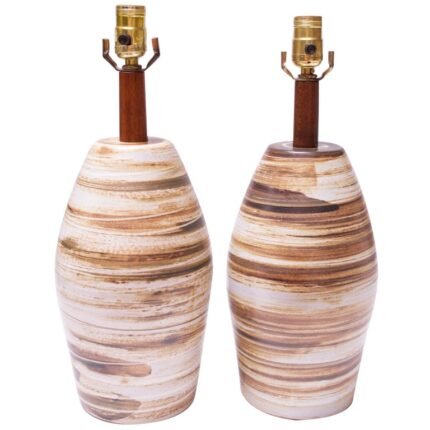 Pair of Martz for Marshall Studios Earth-Tone Swirl Ceramic Lamps