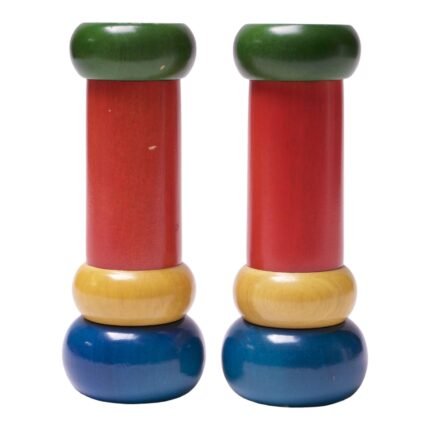 Pair of 1980s Memphis-Style Wooden Candlesticks