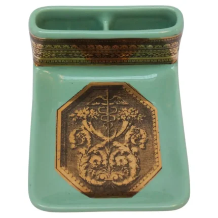 Vintage Piero Fornasetti “Caduceus” Lithograph Gilt Porcelain Green Ashtray