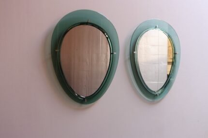Pair of Vintage Italian Green Glass Teardrop Form Wall Mirrors by Cristal Arte