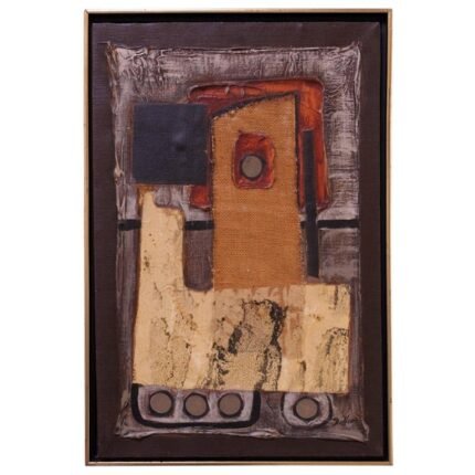 Mid-20th Century Mixed-Media Abstract Acrylic and Raffia on Canvas