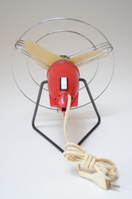 Small Vintage Italian Modern Red Table/Wall-Mounted Fan by MSM Milano