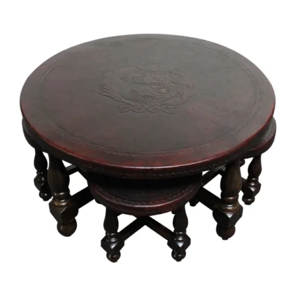 Vintage Embossed Leather Peruvian Coat of Arms Coffee Table and Nesting Stools
