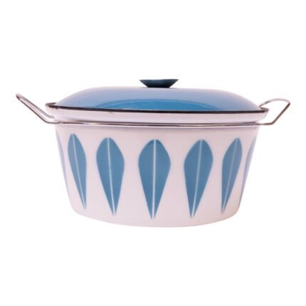 Mid-Century Norwegian Modern 9 Qt. Lidded Blue and White Enamel Casserole by Cathrineholm