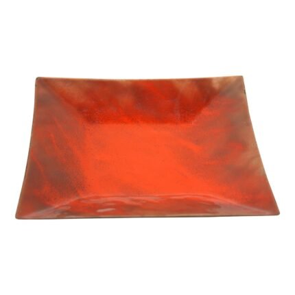 Mid Century Modern Enamel on Copper Square Dish in Orange