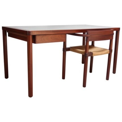 Danish Teak Writing Table with Green Top and Matching Chair