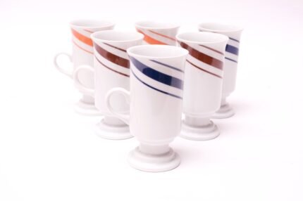 Set of Six Vintage Japanese Porcelain Striped Pedestal Coffee / Tea Mugs