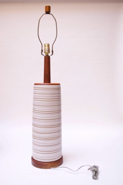 Large Gordon and Jane Martz Walnut and Ceramic Table Lamp with Finial