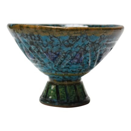 High-Gloss Textured Vintage Italian Studio Ceramic Footed Decorative Bowl / Compote