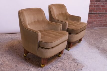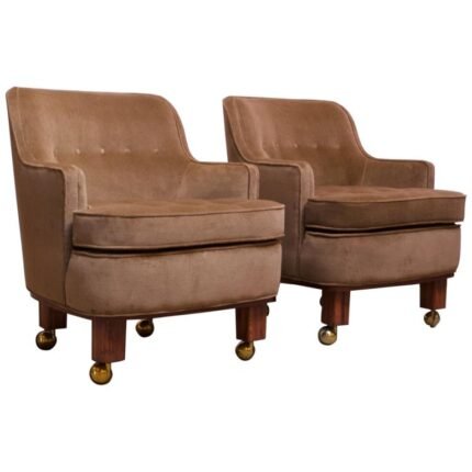 Pair of Lounge Chairs in Mahogany and Velvet by Edward Wormley for Dunbar