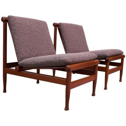 Pair of Petite Danish Modern Slipper Chairs in Teak and Gray Bouclé