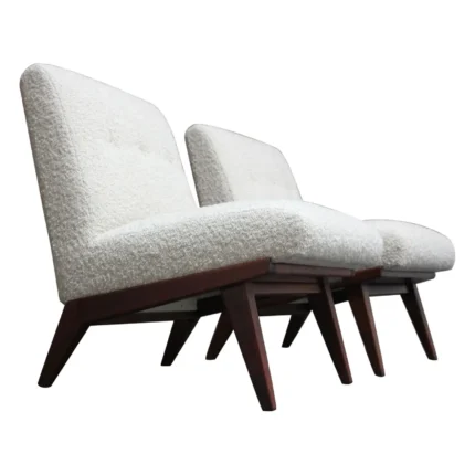 Pair of Bouclé Slipper Chairs Designed by Jens Risom for H.G. Knoll Associates