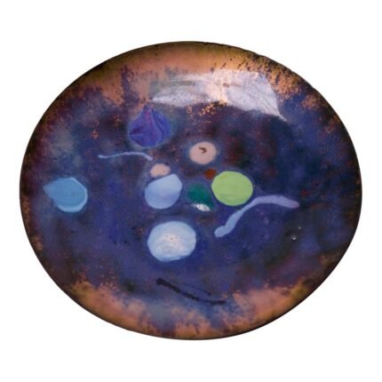 Modernist Blue, White and Gold Enamel on Copper Dish