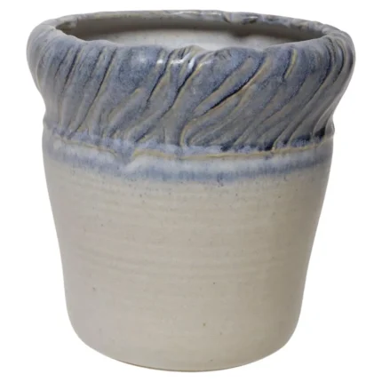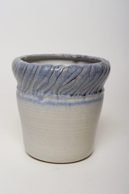 Vintage Navy and Pale Blue Incised Studio Ceramic Planter by Deanna Nichols