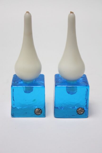 Pair of Swedish Modern Blown Glass Candle Holders by Konst Glashyttan Urshult