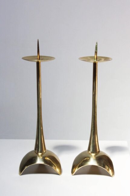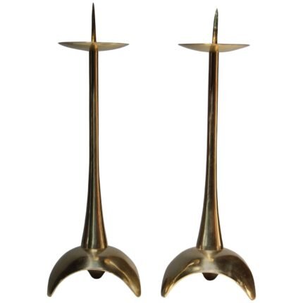 Substantial Modernist Japanese Brass Tripod Candlesticks