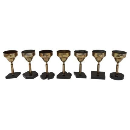Set of Seven Vintage Trench Art Brass Goblets with Bakelite Card Suit Bases