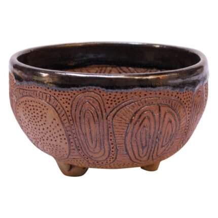 Polk Stoneware Footed Decorative Bowl / Vide Poche with Sgraffito Decoration