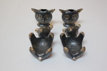 Set of Four Owl and Bear Brass Candleholders/Figurines After Walter Bosse and Herta Baller