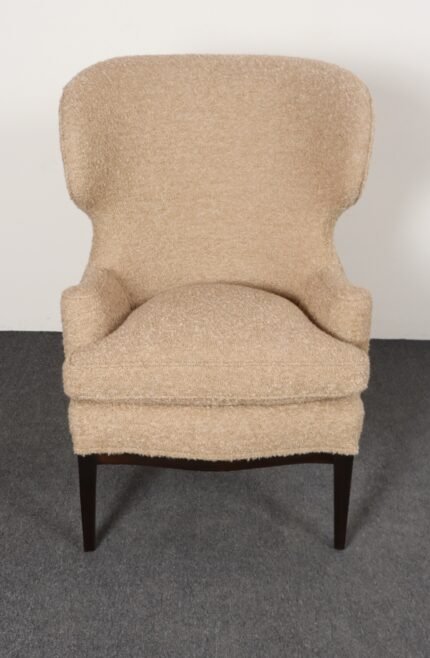 Deco Mahogany and Bouclé Wingback Chair by Edward Wormley for Dunbar Model 103B