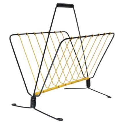 Vintage French Modern Yellow and Black Wire Magazine Rack