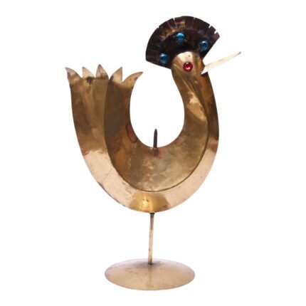 Early example of Donald Drumm’s candelabras composed of an arrangement of five holders in a sculpted, cast-aluminum form. Magnificent objet d’art / table-top conversational piece.