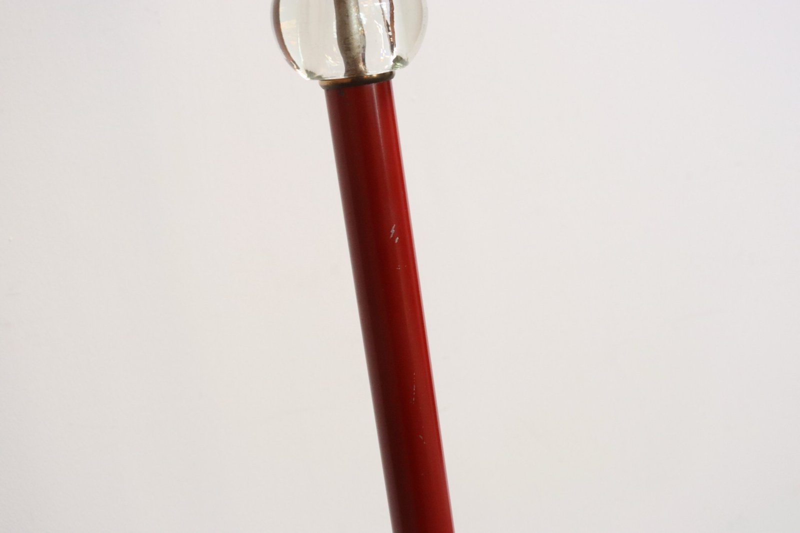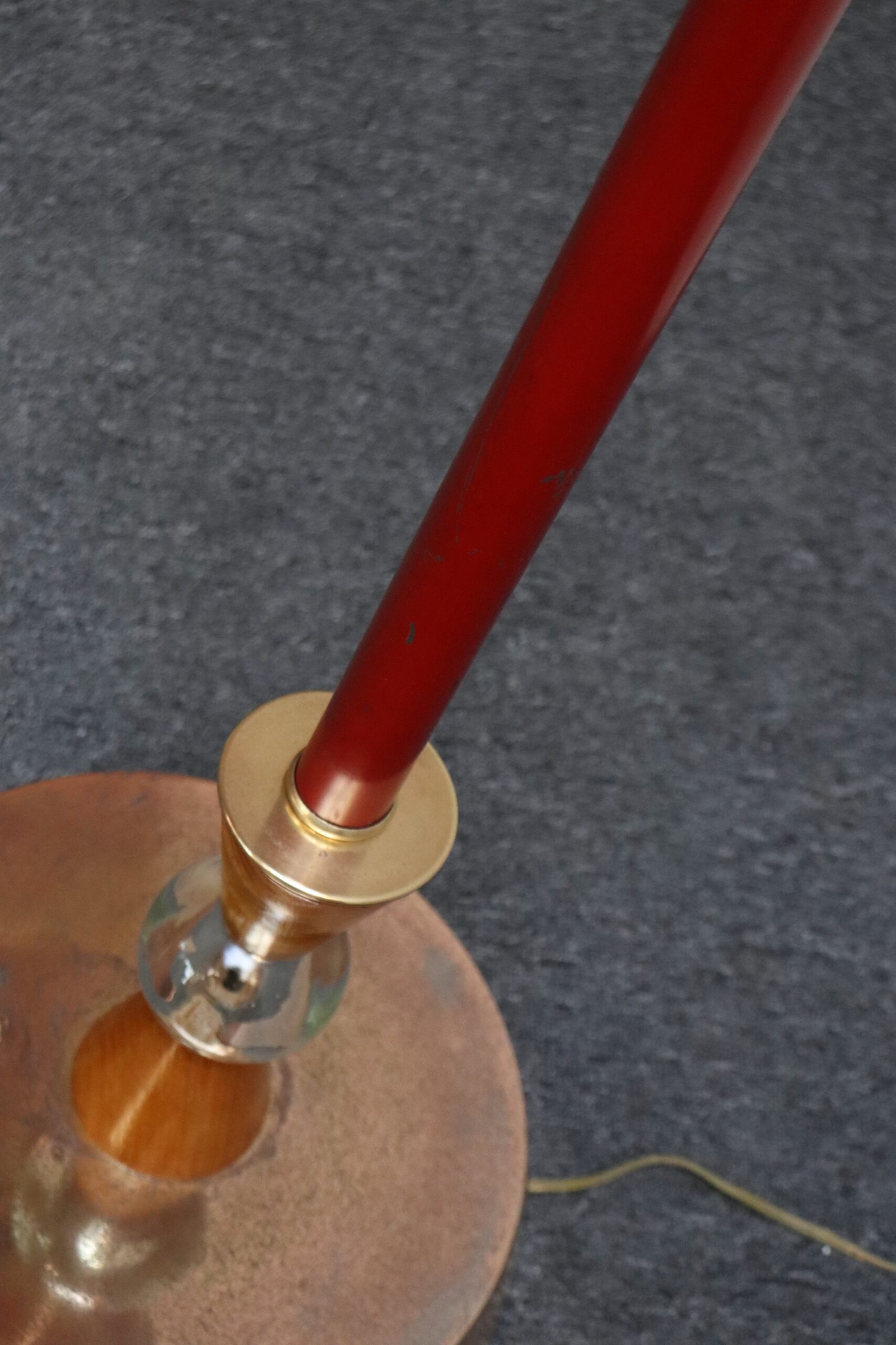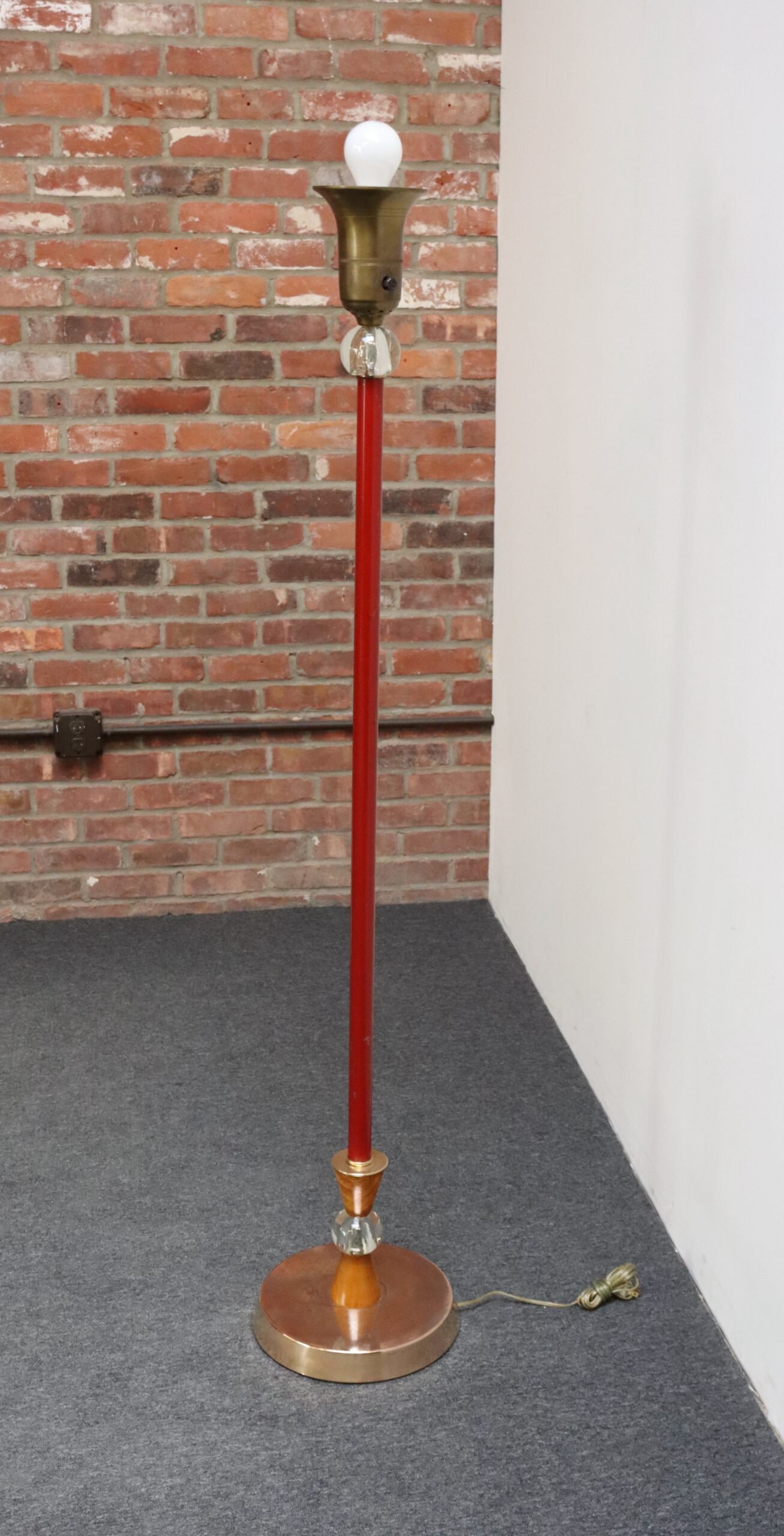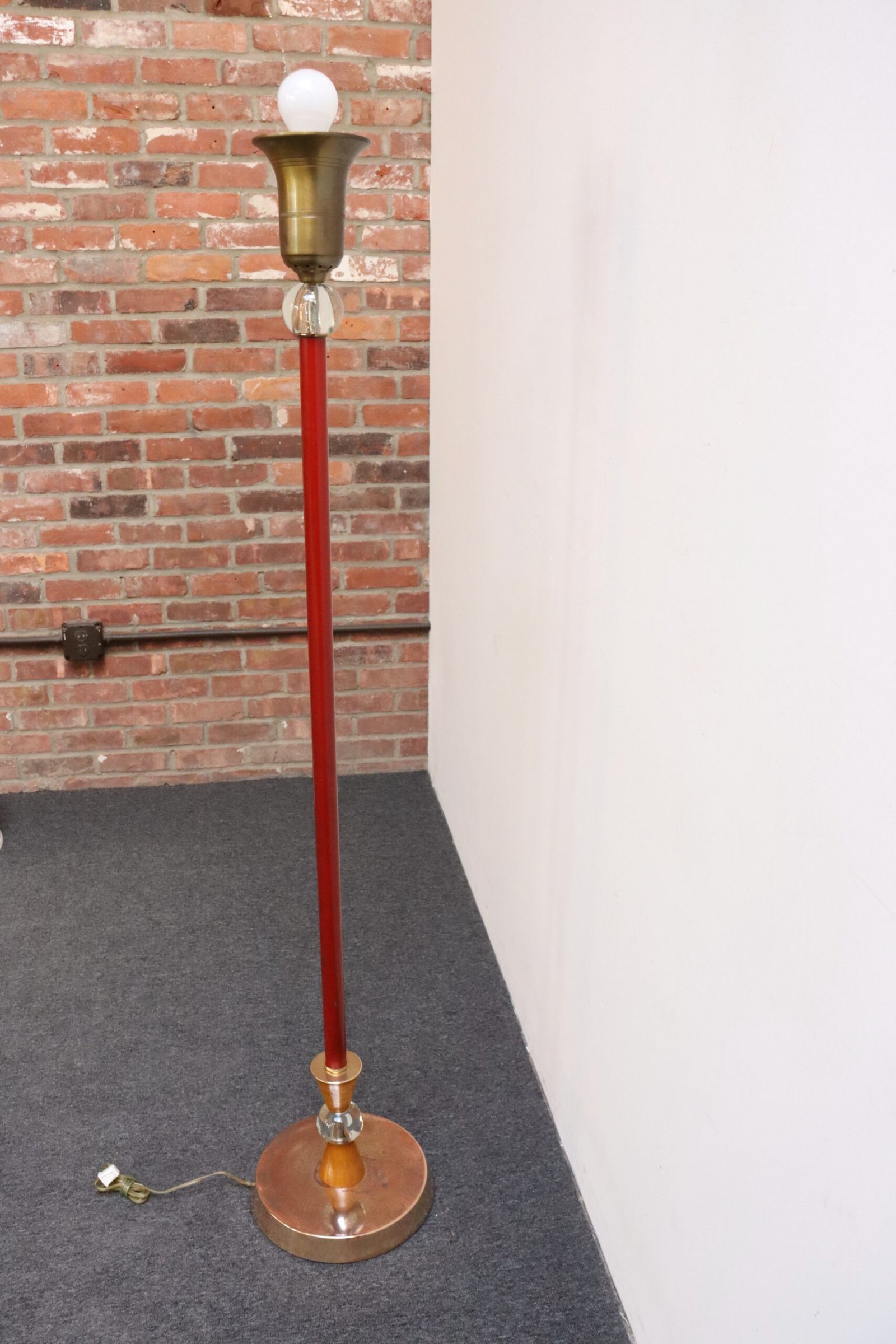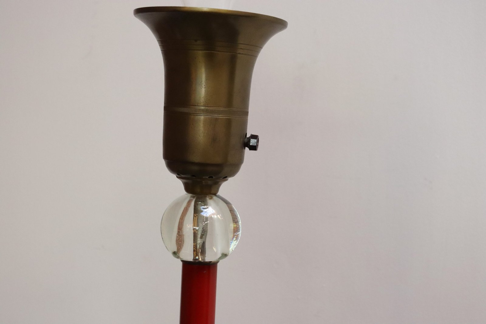Art Deco Red Painted Metal, Glass and Brass Torchiere Floor Lamp