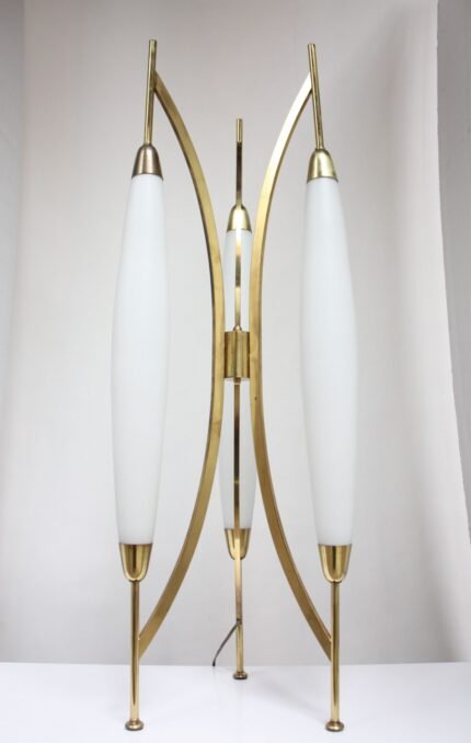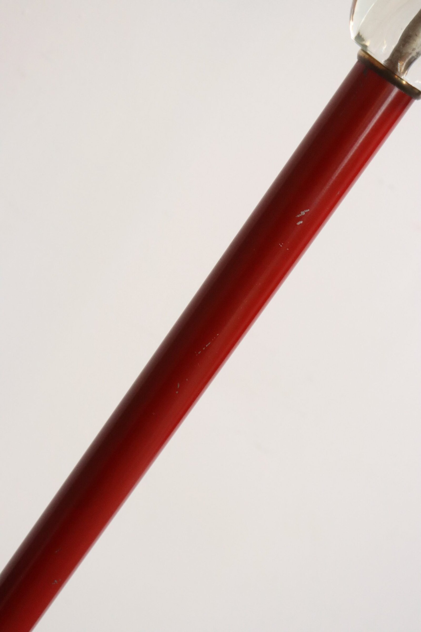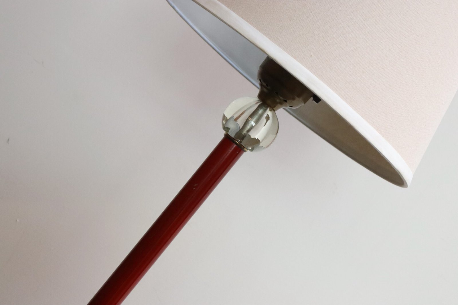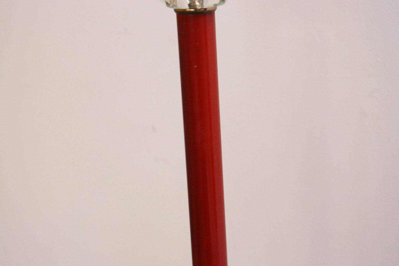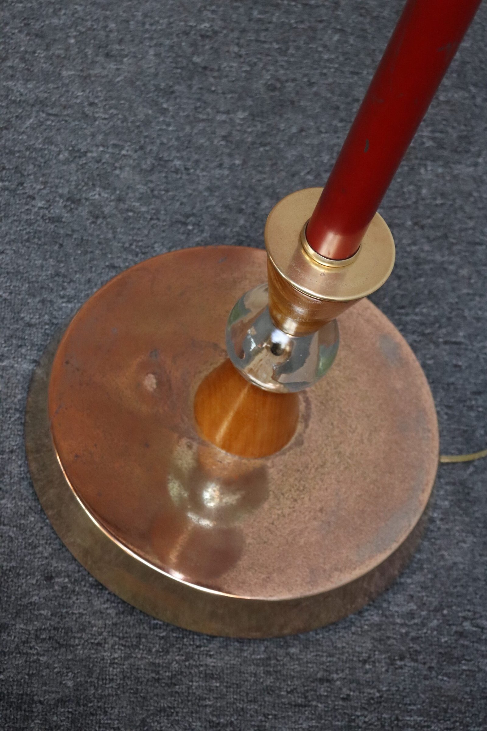 Art Deco Red Painted Metal, Glass and Brass Torchiere Floor Lamp