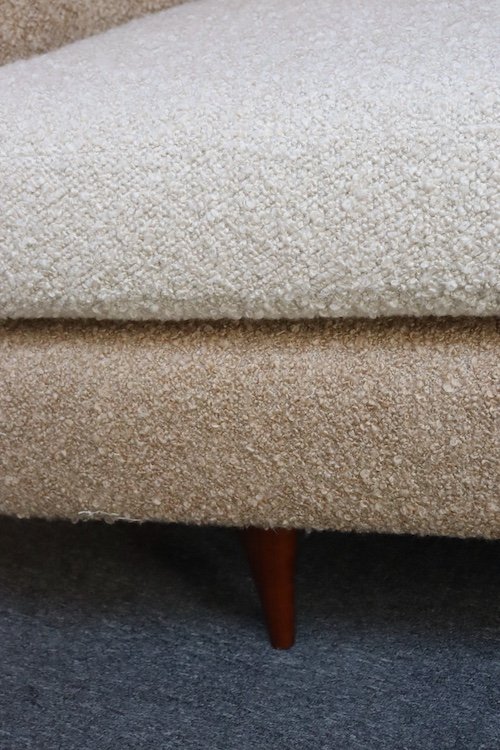 Danish Modern Curved Sofa in Teak and Two-Tone Bouclé by Selig