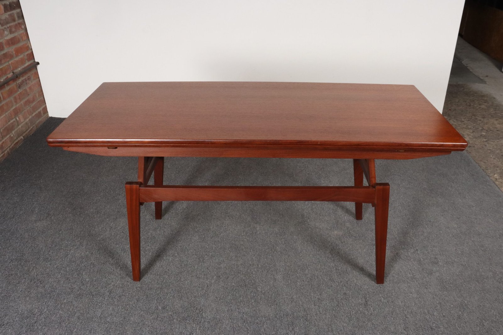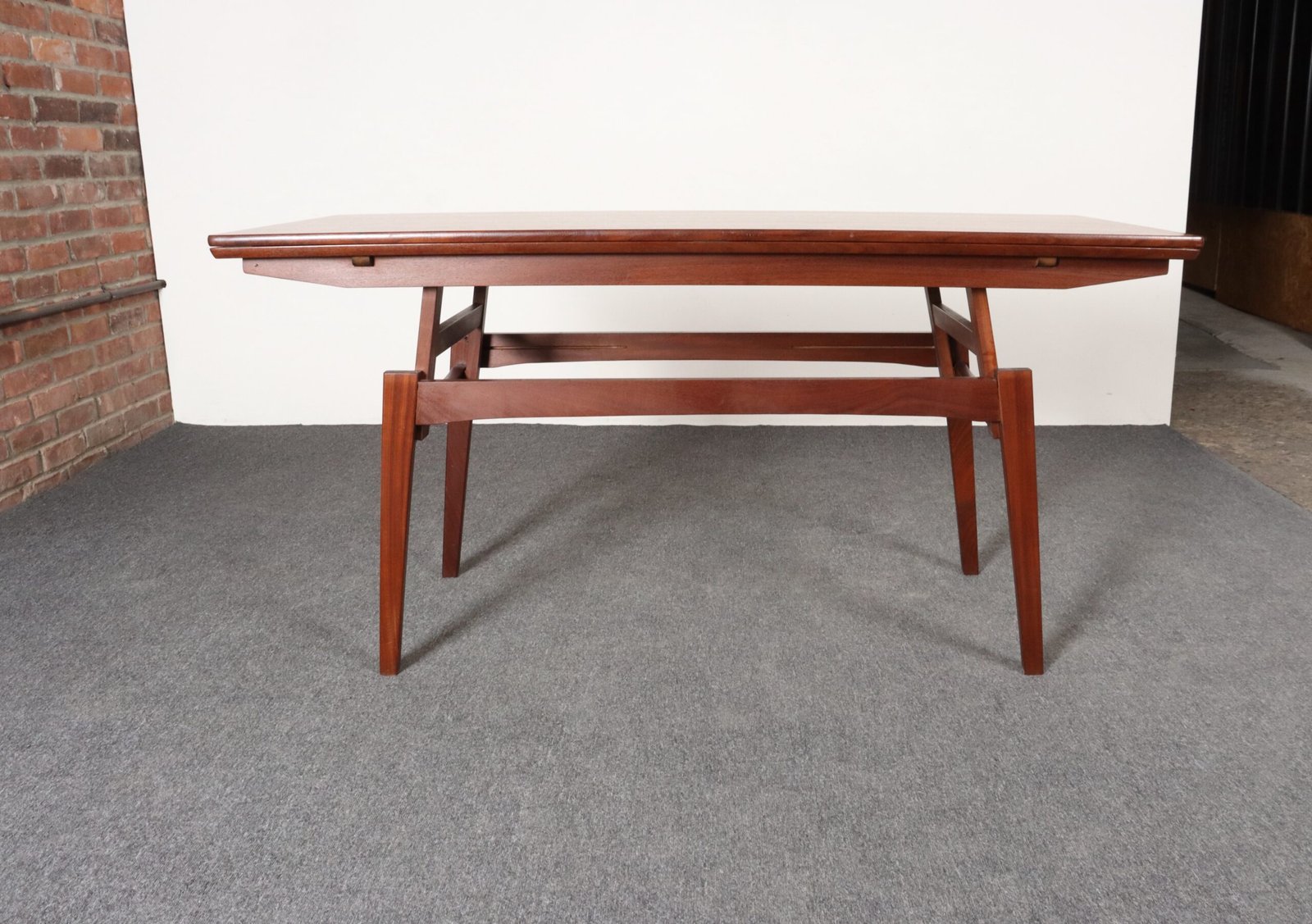Danish Modern “Elevator” Metamorphic Coffee Table / Dining Table with Two Leaves