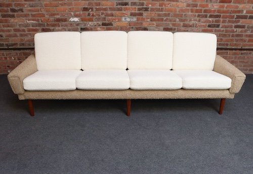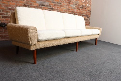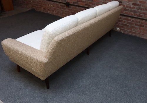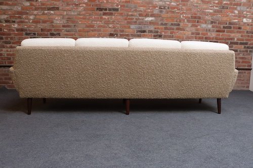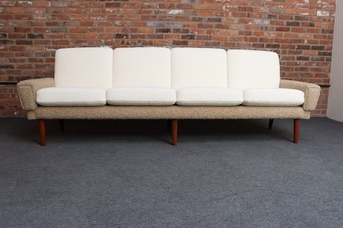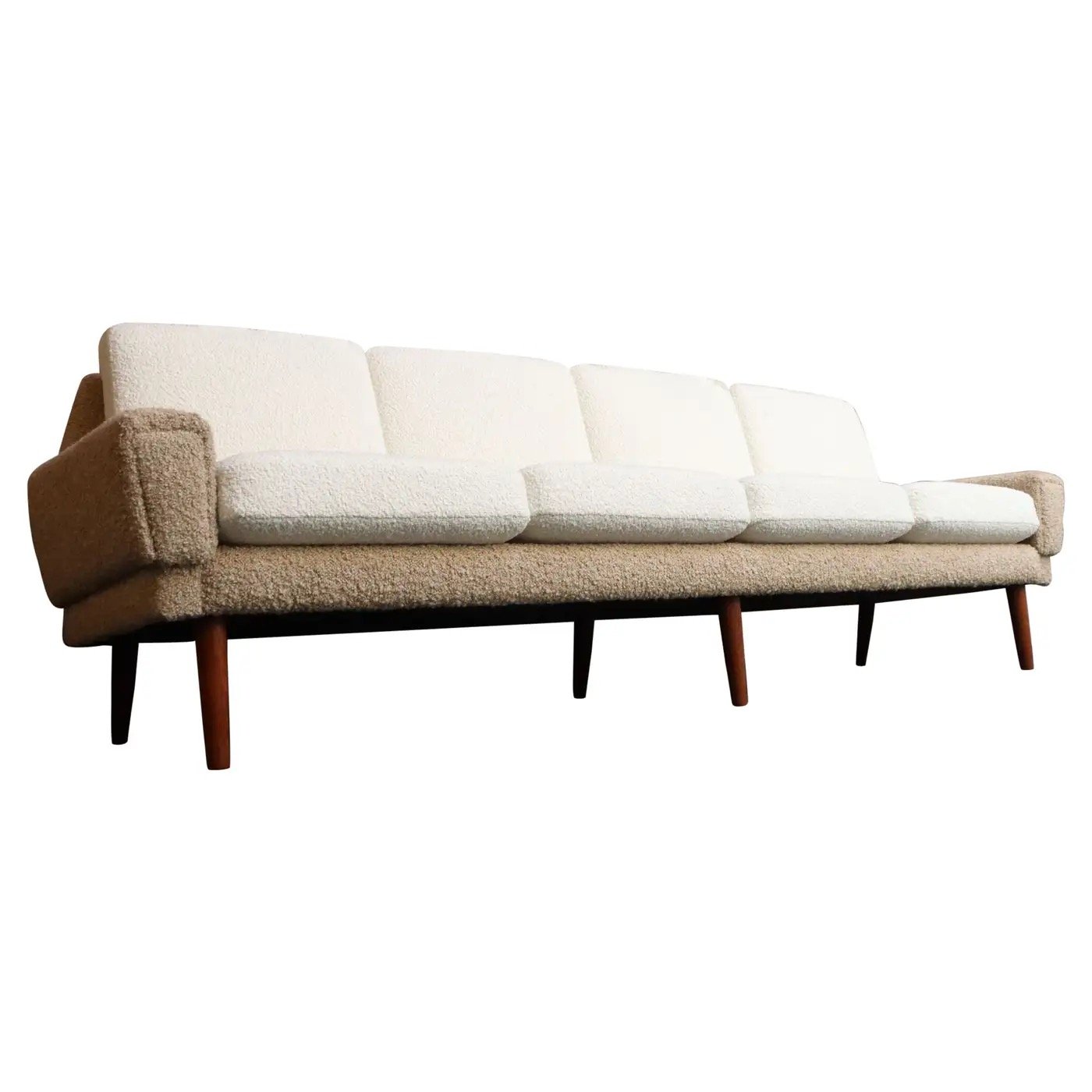 Danish Modern Four Seat Long Sofa in Teak and Two-Tone Bouclé