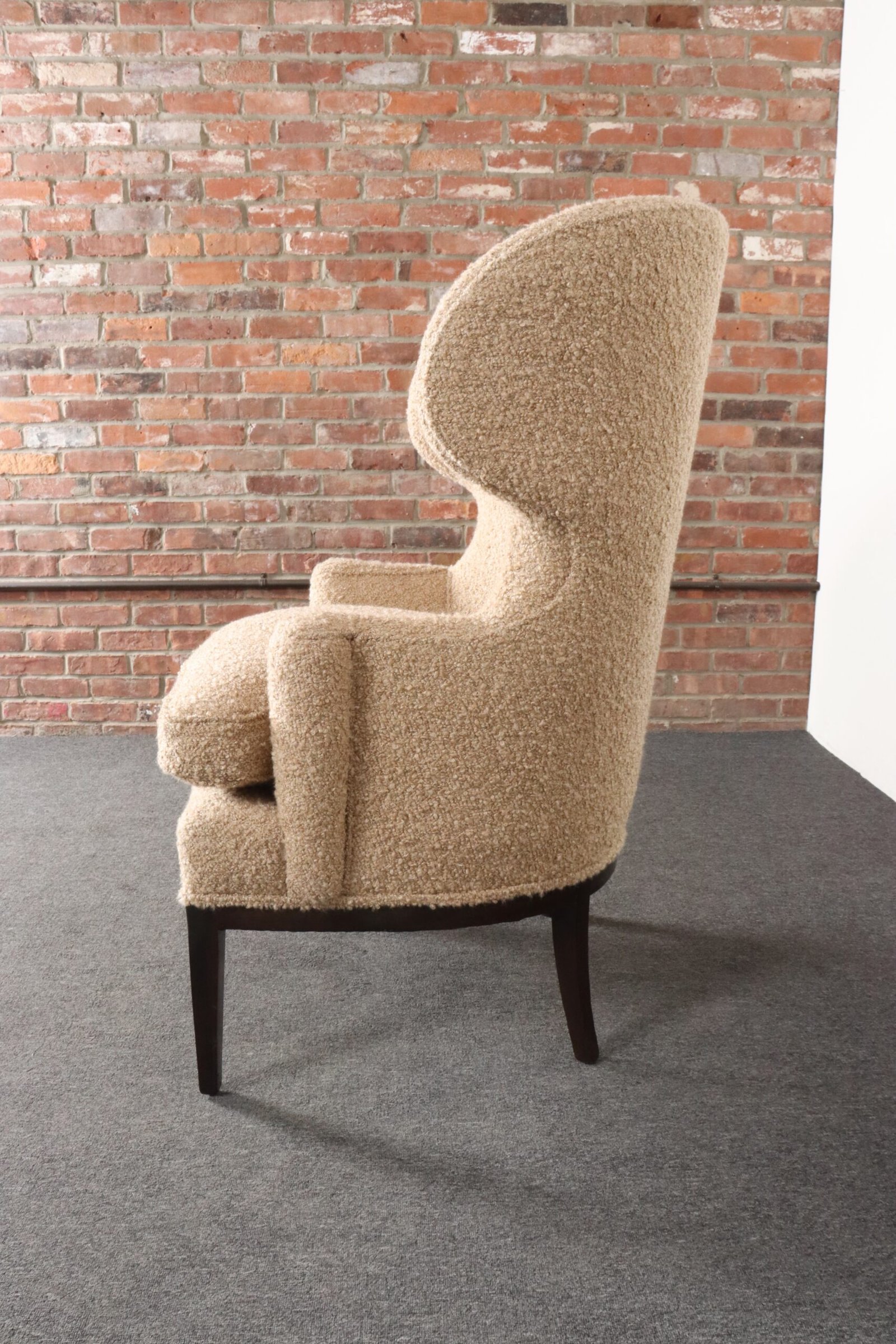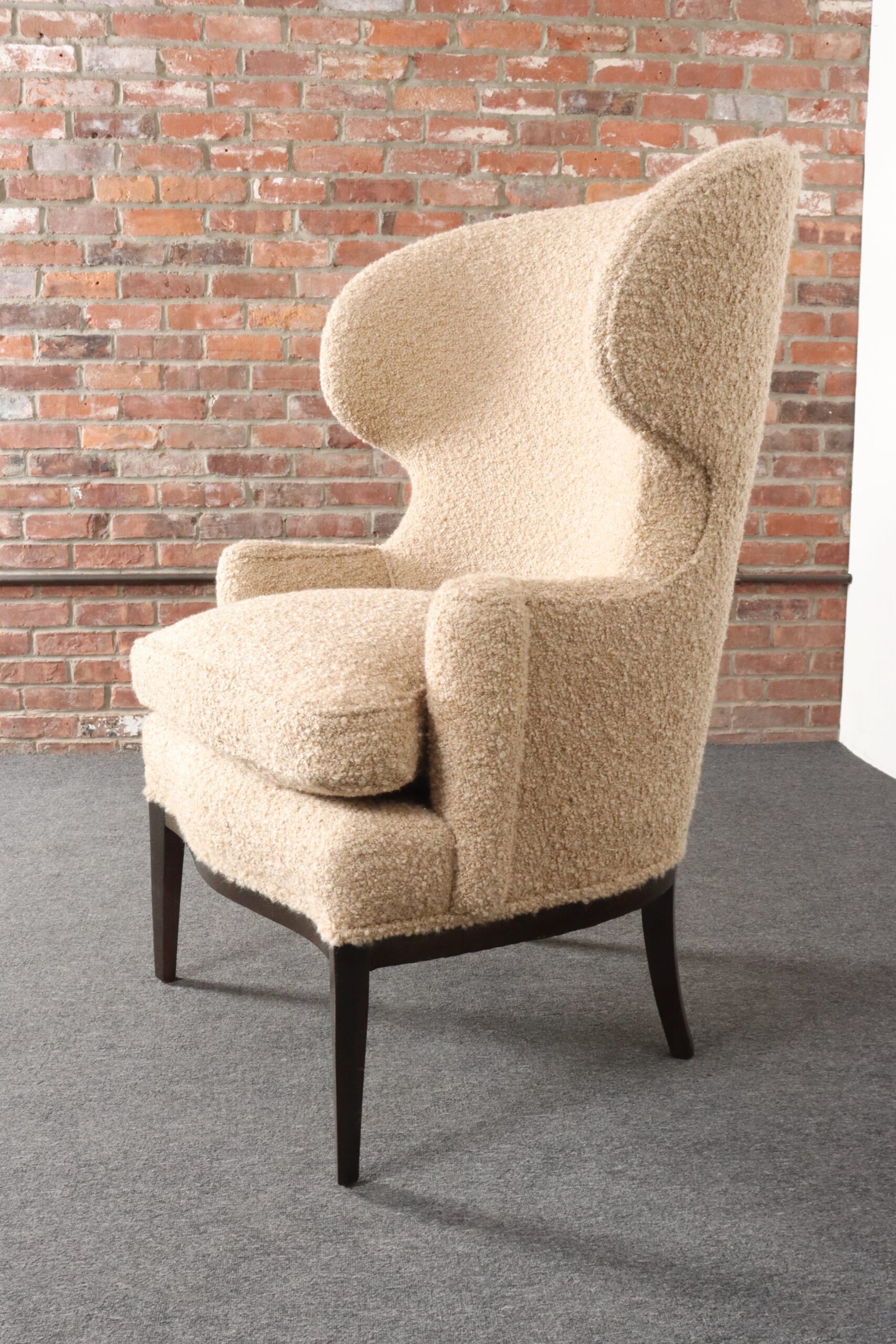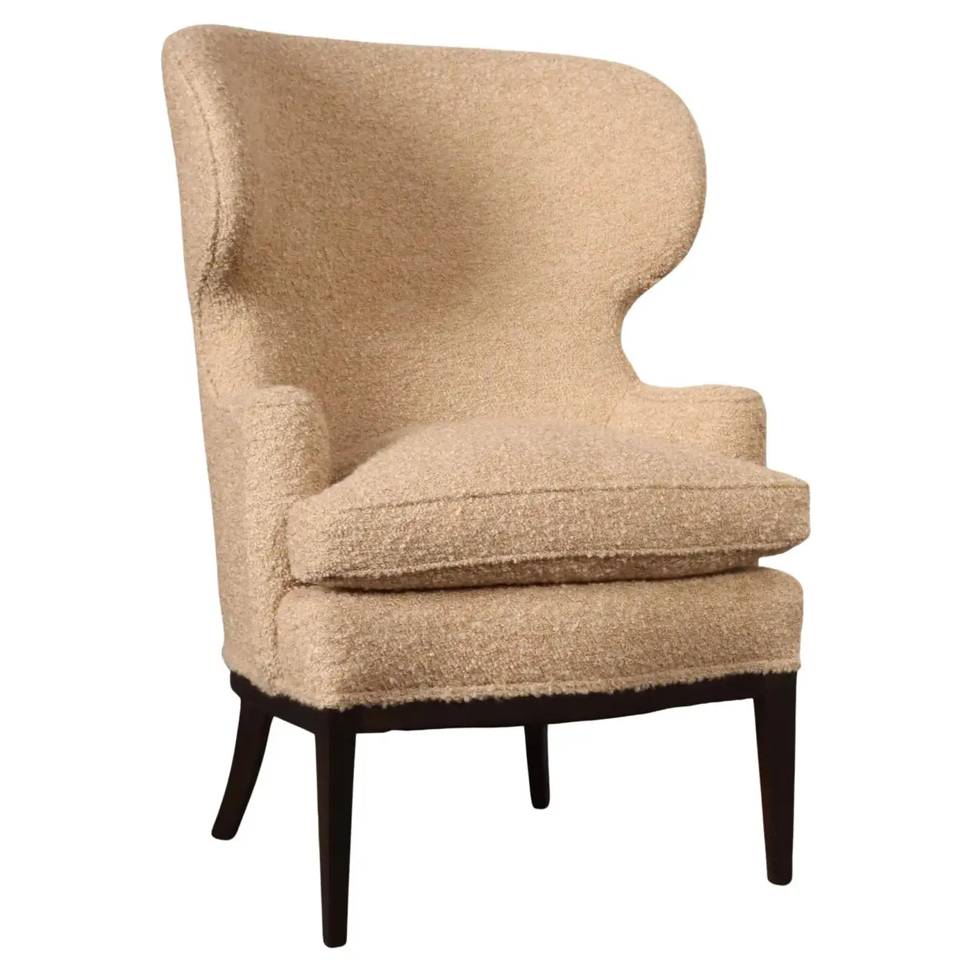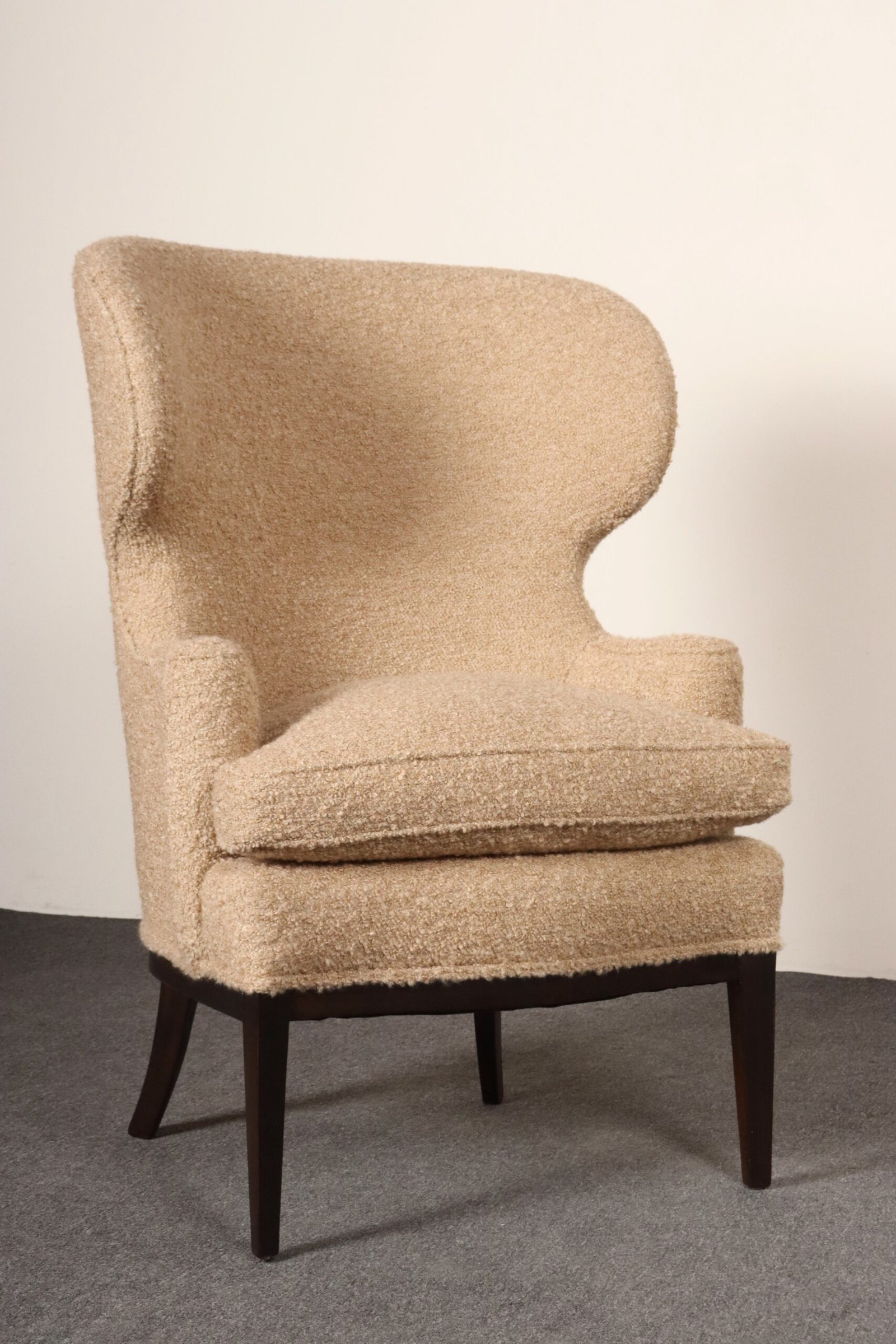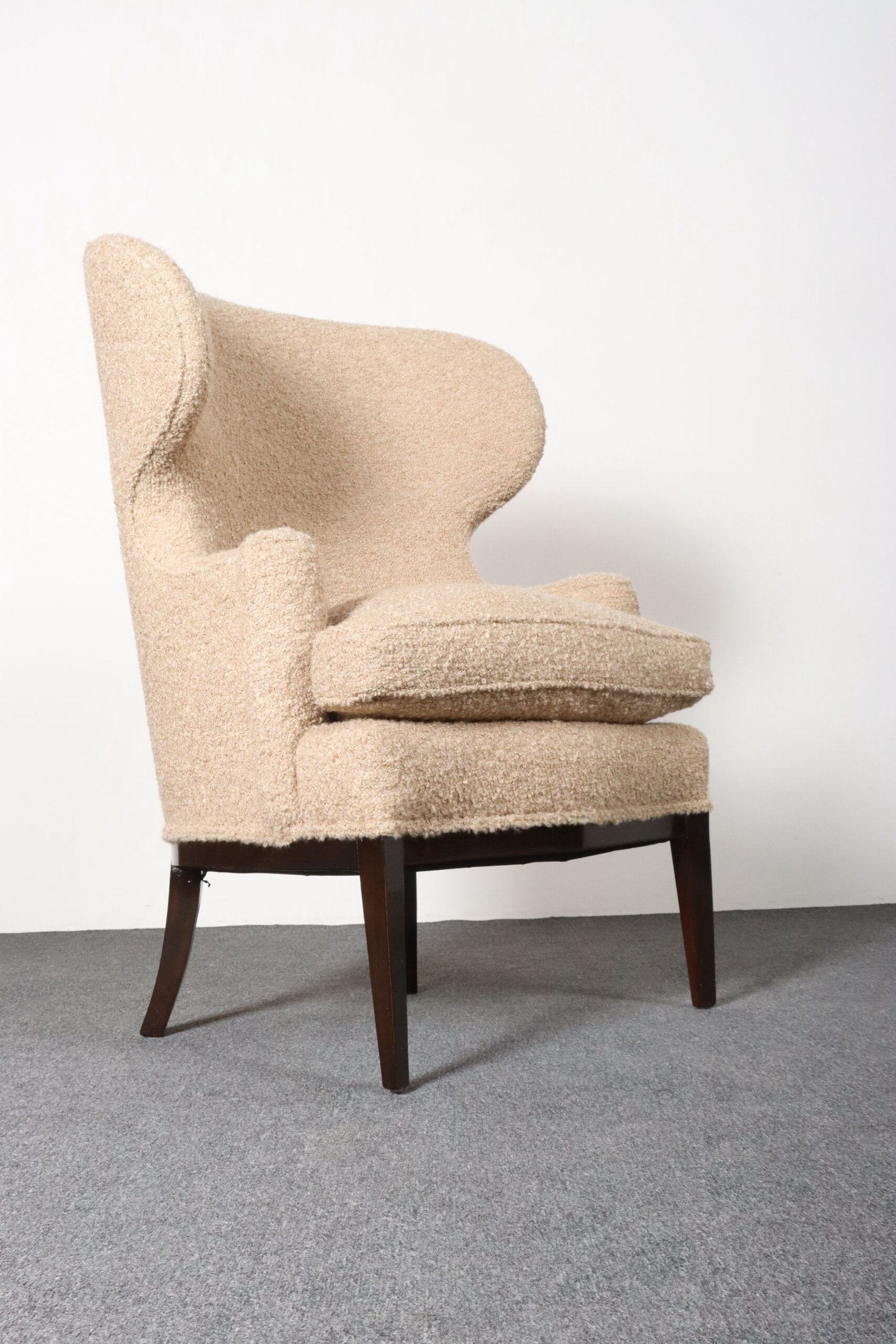 Deco Mahogany and Bouclé Wingback Chair by Edward Wormley for Dunbar Model 103B
