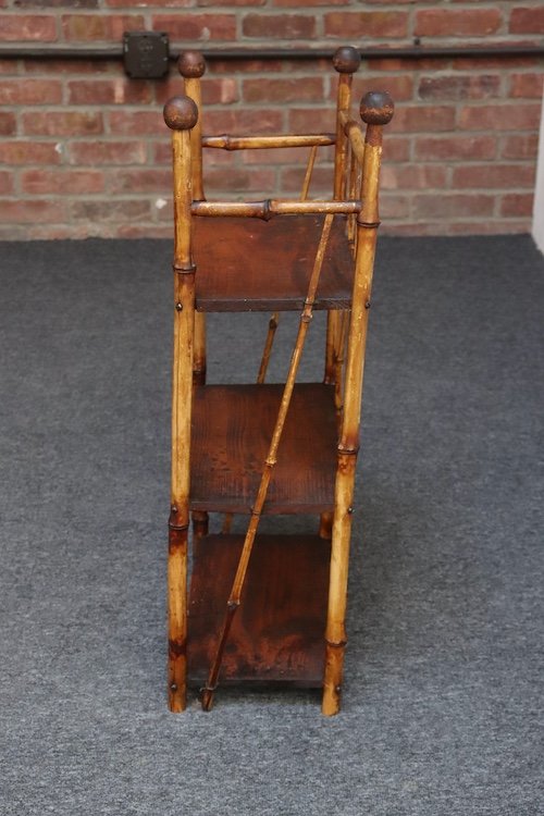 Be the first to review “Diminutive Antique Aesthestic Movement Bamboo Three Tier Shelf Etagere Bookcase”